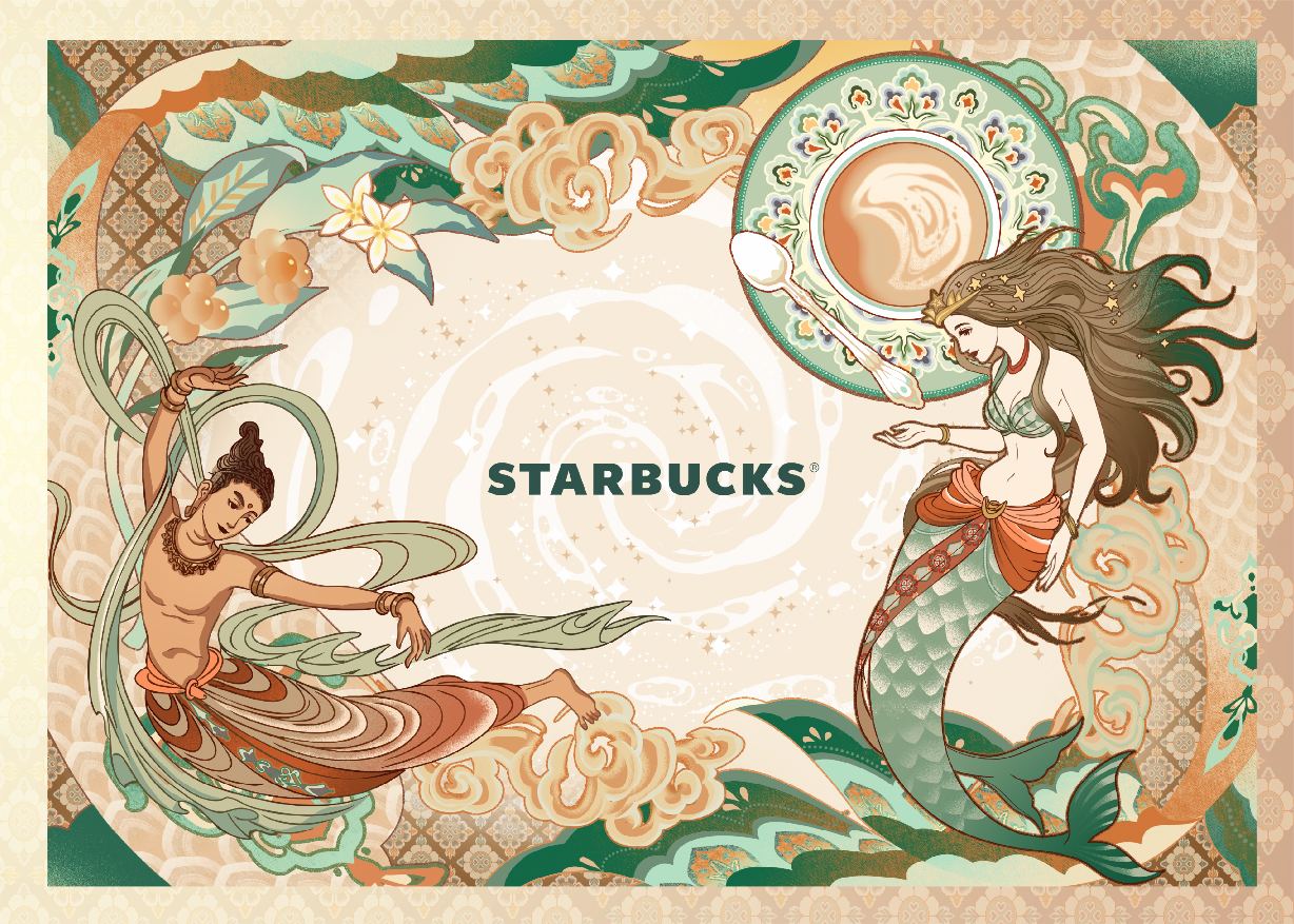 当来自敦煌的古风与咖啡的香气相遇,当自在的飞天与自由的塞壬共舞,一场跨越时空的文化交融,正悄然开启。9月23日,星巴克携手敦煌美术研究所,以五幅敦煌经典壁画为灵感,推出限定联名系列商品,将古老艺术的美学精髓注入现代生活场景,在一杯咖啡的时光里,讲述丝路的美学故事。