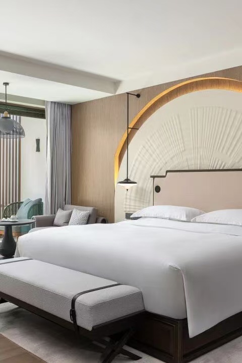 所用的马林·格茨洗漱用品散发淡淡草木香,汉斯格雅卫浴设施将现代舒适与古典美学完美结合。美憬阁定制床具系统,带来轻柔包裹感,让你融入江南水乡的秀梦中。