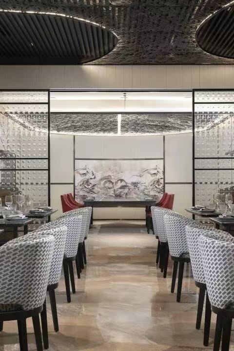 168座的留客处目的地餐厅,穹顶与墙面皆装饰着华察诗词画作中所描绘的清竹,设计灵感源自“竹文化”。