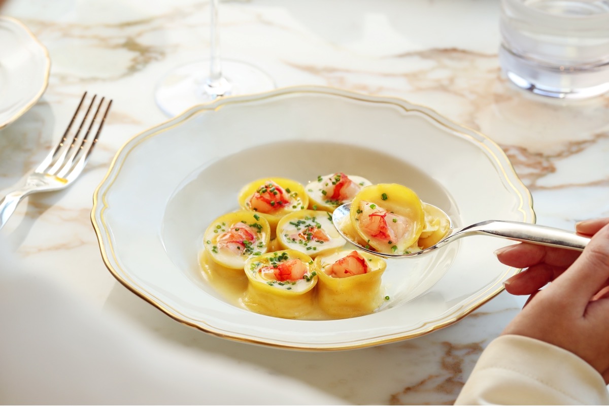 意式手工饺子配红虾,黄油,柠檬及沙葱