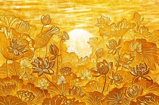 ![]() ![]() | 越南竹纸艺术 竹纸艺术(Trúc Chỉ)源于“让纸脱离作为背景的身份,成为独立艺术作品”的理念,2000年由艺术家Phan Hải Bằng及其团队创作发展而来。2012年,这一艺术形式首次获得美术奖项,成为重要里程碑。与艺术家Ngô Đình Bảo Vi合作以来,竹纸艺术通过在越南及海外的多场展览(包括法国、德国),赢得了更广泛的关注。最近一次展览是在2022年,于顺化法国文化中心与艺术家Dominique Rosseau合作展出。竹纸艺术以独特技法“trucchigraphy”著称——融合传统造纸、水压与版画原理,创造出丰富的色调与光影效果,礼赞光与影、阴与阳的对比之美。竹子、稻草、甘蔗、香蕉、树叶与青草等质朴材料,经由这一技艺被升华为当代艺术之美,唤起观者深切的情感共鸣。 | |