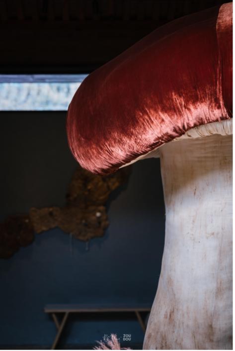 “蘑菇就像是我看待这个世界的一个视角。它是自然界中最不起眼最不被注视的生命之一,像极了每个老实腼腆、默默无闻的中国人,生长在一个狭小、不被阳光照射的角落里,以自己独特的方式汲取周围的养分,一点点努力地向上生长,在壮大过程中与自然建立宇宙性的联系,从而获得更多的生命力。它们的群落关系,就像人类的社会关系一样,从不孤立生长,却在共生中保持独特。每个蘑菇都有自己独特的形态和颜色,恰似每个人不同的性格与样貌。当我们一点点贴近它,便能从它身上照见自己——每一株都拥有独一无二的轮廓与纹理,恰似我们在群体中依然保持的个性与灵魂。虽生而平凡,却始终坚守自己的生命之道,一点点竭力地演绎着自己的故事。