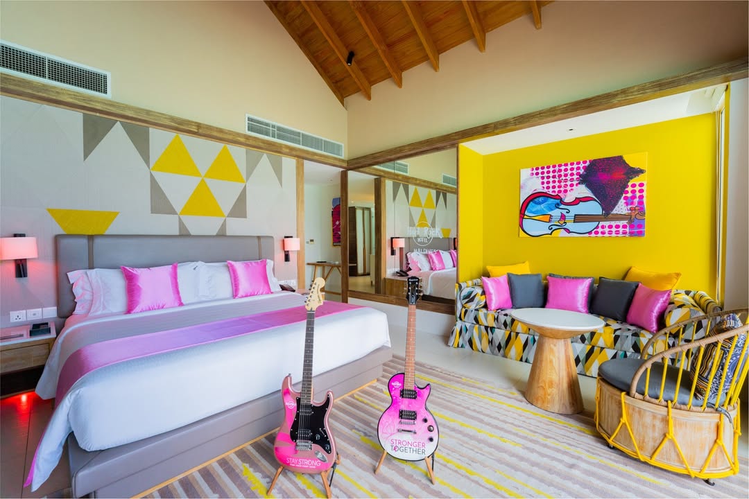 全球各地的硬石酒店也在这股粉红浪潮中散发能量,感染不同国度、文化和社区的群体——马来西亚迪沙鲁海岸硬石酒店携手当地乳腺癌康复关怀协会,于10月25日举办「The Big Pink Walk」公益徒步活动,号召宾客以一场意义非凡的4公里健康之行,汇聚祝福与力量。活动后续的「Pinktober Fair」以健康、公益与社区互动为核心,打造充满温度的市集体验;马尔代夫硬石酒店推出粉色主题客房及限量版粉色吉他体验「Play It Pink, Play It Forward」,部分客房升级体验的收益将捐赠予马尔代夫癌症协会;巴厘岛硬石酒店携手巴厘岛乳癌基金会,举办粉红吉他慈善拍卖、粉色餐饮与水疗体验活动,从音乐到味蕾,从放松到行动,处处闪耀。
