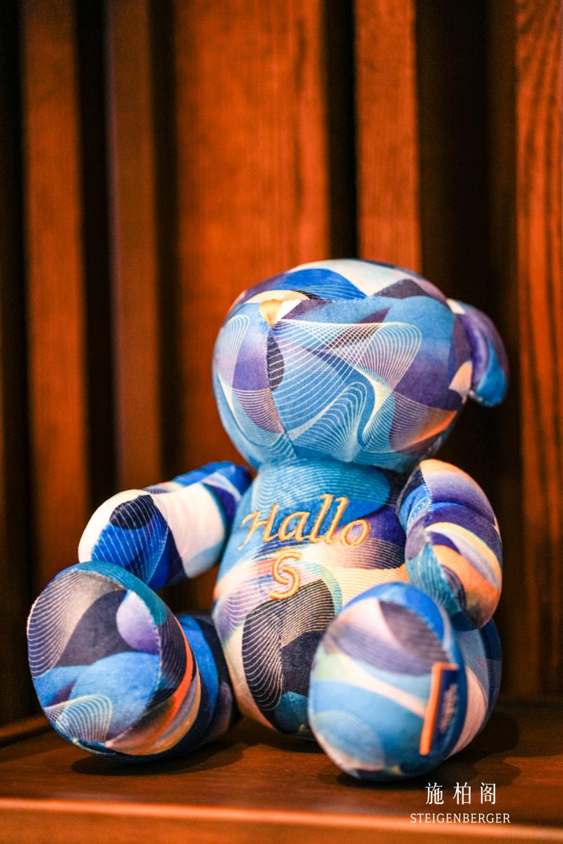 此次发布的施柏阁可力乐熊,是一只以丝为媒、光为脉、施柏阁蓝为底的艺术化熊形象。它既承载着深厚的德国文化基因,又以柔软温暖的外表打破了人们对德国刚毅的固有印象。在德国文化中,“熊”与国家和民族关系密切,尤其在柏林,熊被视为城市的象征,代表着力量与友好。施柏阁选择这一形象,正是看中其文化内涵与温暖包容的外在表现,旨在让每一位宾客在施柏阁的旅程中,感受到如拥抱般的陪伴。