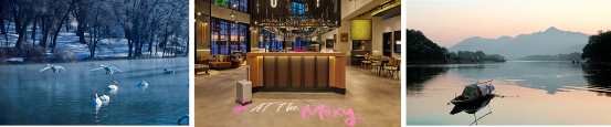 昆明长水机场福朋喜来登酒店临近昆明长水国际机场,结合独特的花园景观,让行程衔接顺畅;苏州尼盛AC欧轩酒店位于古城区与工业园区交汇处,毗邻金鸡湖,兼具人文底蕴与现代景致;西安高新区福朋喜来登酒店毗邻“未来之瞳”与永安渠商业街,交通便捷。宾客可轻松探访陕西考古博物馆等景点,尽享古城深厚的历史魅力。上海普陀Moxy酒店由百年石库门里弄改造而成,坐拥苏州河畔工业文明底蕴,融合水韵灵动与都市活力;冬日旅居伊宁万豪万枫酒店,从赛里木湖的蓝冰秘境启程,穿越银装素裹的伊犁河谷,再探访天鹅泉畔的雾凇林,尽享北疆冬日的诗意与静谧;入住丽水银泰源宿酒店,可轻松抵达南明山、白云山森林公园与古堰画乡,在山水中寻得一方闲适;湖州南浔福朋喜来登酒店坐落于南浔区,周边风景优美,距离著名的南浔古镇景区仅3公里。昆山淀山湖雅乐轩酒店依湖而建,宾客可沉浸于环湖骑行与彩虹桥落日之中。