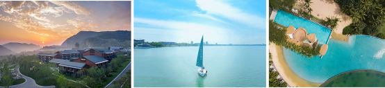 南京威斯汀温泉度假酒店外观、苏州苏州湾艾美酒店水上帆船体验、三亚艾迪逊酒店海滩俱乐部、