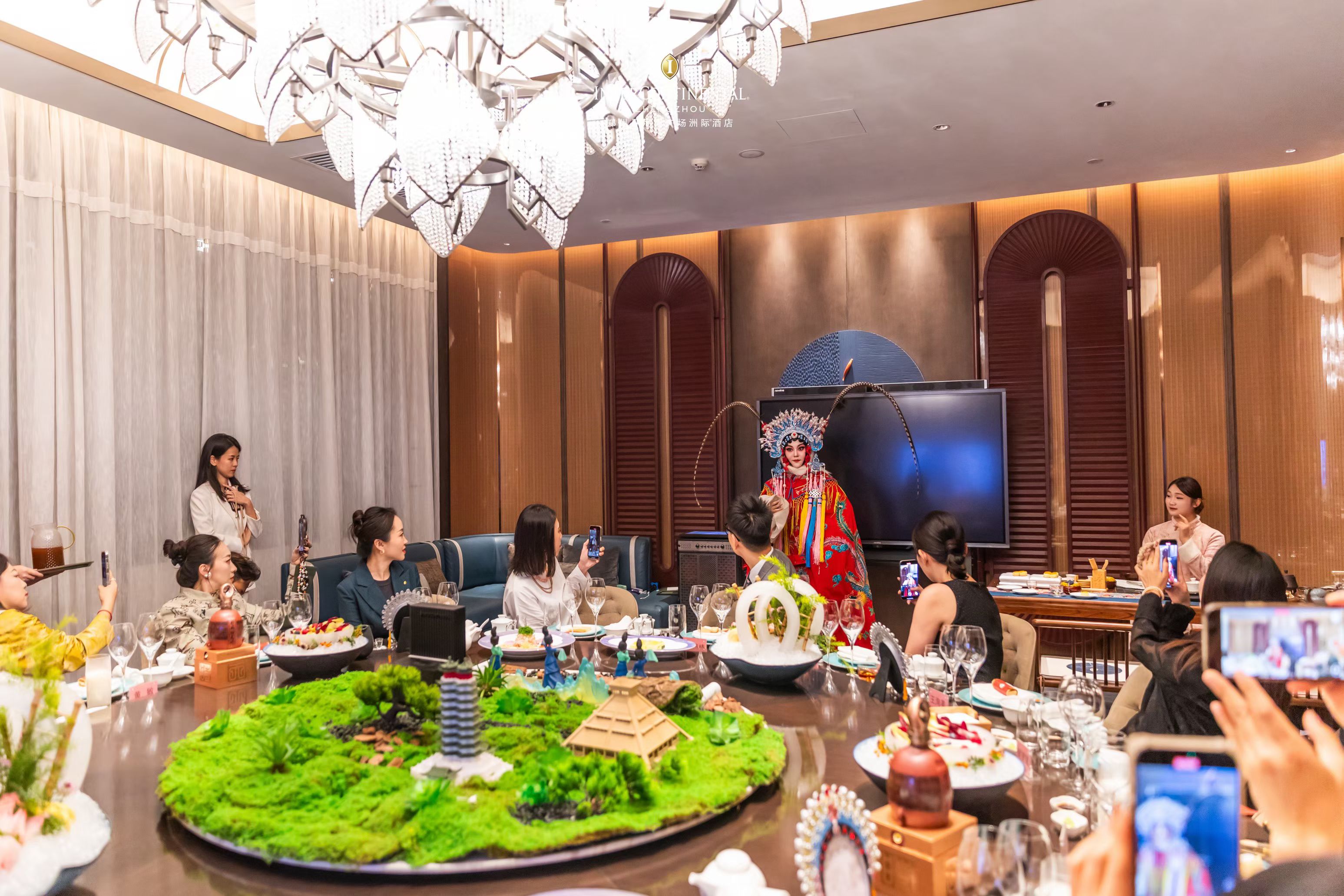 10月30日,酒店举办“洲际夜宴,共盏中原”媒体品鉴晚宴,以豫菜为基,聚焦中原本土餐饮精髓,融合“五味调和、质味适中”的饮食哲学,为媒体代表与文旅达人呈现了一场中原风土的味觉盛典。彩丰楼中餐厅厨师团队匠心打造的菜单,堪称“可食用的中原饮食史”:前菜“彩丰冷艺五珍盒与肆彩碟”重现豫菜精髓;汤品“酥皮八掺胡辣汤”、热菜“禹州粉皮烧澳洲大龙虾”、“荆芥鱼露焗烤大海螺”等,均以创新手法演绎中原美食;压轴甜品“红酒烤灵宝寺河山苹果配香草冰激凌”则凝练一方水土风味。席间更融入非遗茶艺与豫剧表演,以“礼乐”相佐,展现酒店对中原文化的当代诠释与传承。