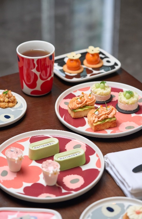 上海鲁能JW万豪侯爵酒店推出以Marimekko印花为灵感的联名下午茶。下午茶供应多款融合北欧灵感与焕活能量的创意甜咸点,如翠玉肉桂苹果慕斯,灵感源自北欧冬日的森林物语,翠绿慕斯中裹挟肉桂苹果酱,入口是羽衣甘蓝的清新与肉桂的暖香交织,清甜不腻,回味绵长。草莓玫瑰凝杯,将草莓慕斯、新鲜果肉与晶莹玫瑰冻层层叠合,宛如一朵在杯中盛开的玫瑰,融合花香与果香的甜蜜滋味。绯红火龙果芝士慕斯,火龙果的明艳色泽调配恰如Marimekko经典粉色花卉,将芝士的醇厚乳香巧妙搭配制成绯红慕斯蛋糕。带来颜色鲜亮与口感细腻的味觉体验。热情果蛋白秘境,在蛋白糖筑起的雪白世界里,热情果酱如一抹跃动的金色音符,酸甜交织,口感绵密丝滑。