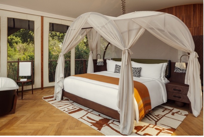 营地的室内设计延续了丽思卡尔顿酒店经典的低调奢华,同时更注重在地文化的质感与温度。大部分家具与装饰由肯尼亚本地工匠手工打造,从纳罗克火山岩的天然石材,内罗毕工坊的木作,到当地妇女编织的手工织品,每一处都承载着土地的温度与工艺的灵魂。