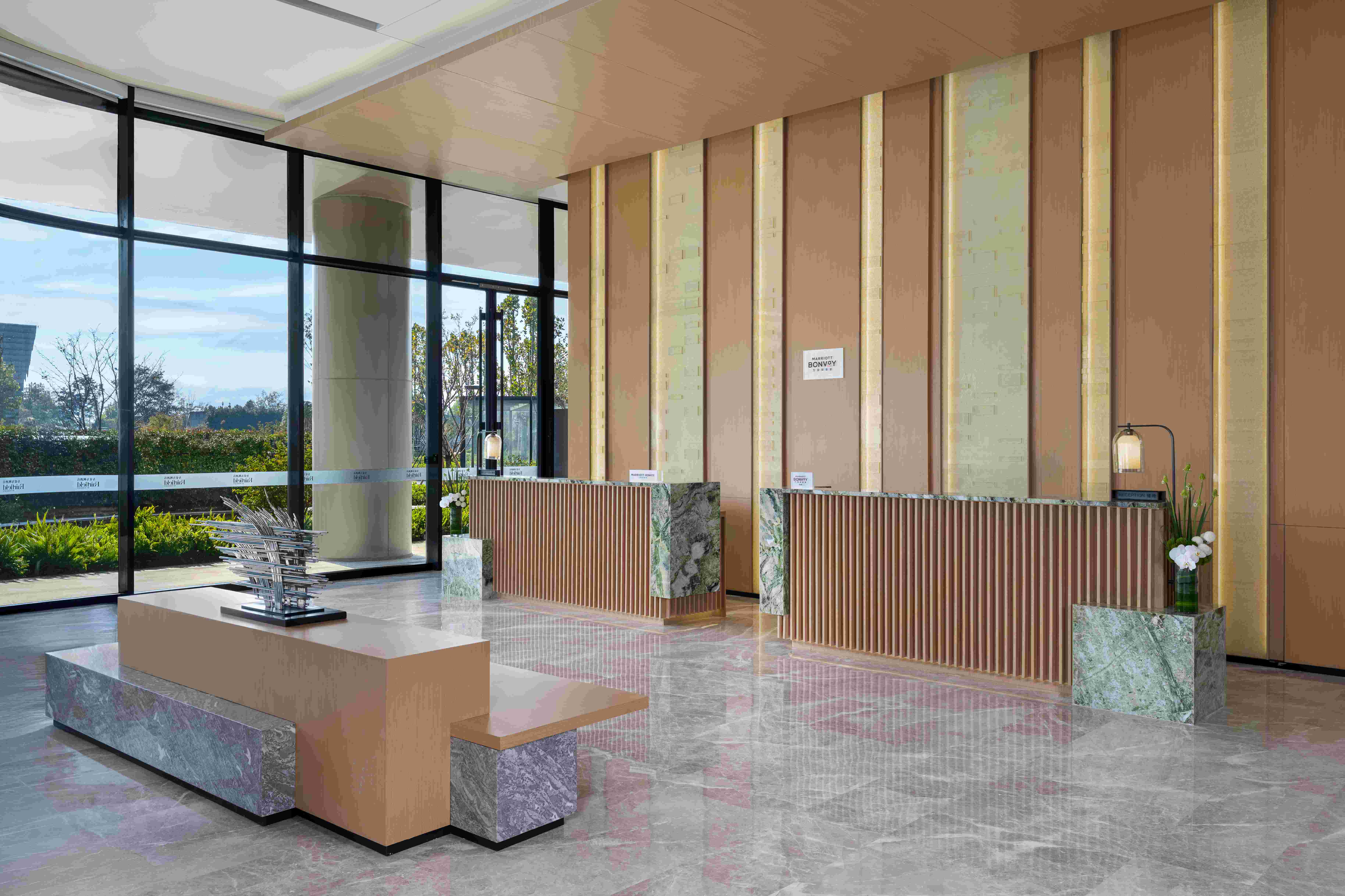 尽管同属万豪旅享家体系,德清万豪酒店与德清万豪万枫酒店却基于不同客群需求,形成了鲜明的差异化定位。其中,德清万豪酒店以“百里湖山,竹影半墙”为设计脉络,将德清地域特色融入空间营造。在功能布局方面,酒店既为商务人士设置了专属贵宾空间,又通过集国际美食与本地风味于一体的餐饮区、24小时健身中心、室内恒温泳池等多元设施,全方位满足商务会议、亲友聚餐、休闲康养等不同场景的需求。