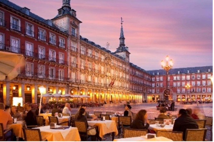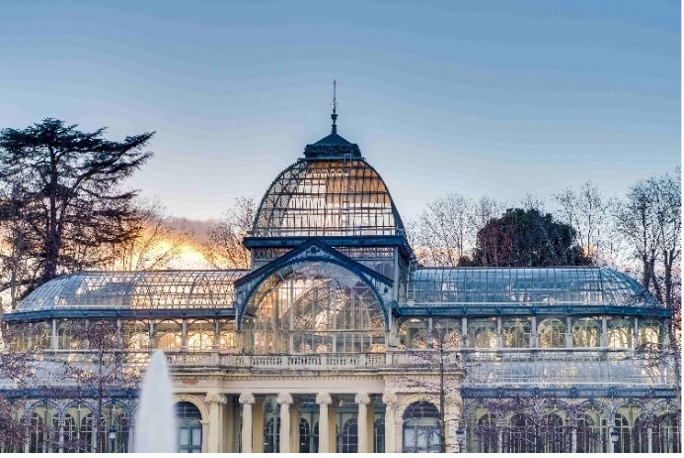 马德里马约尔广场(上) 马德里丽池公园水晶宫(下)