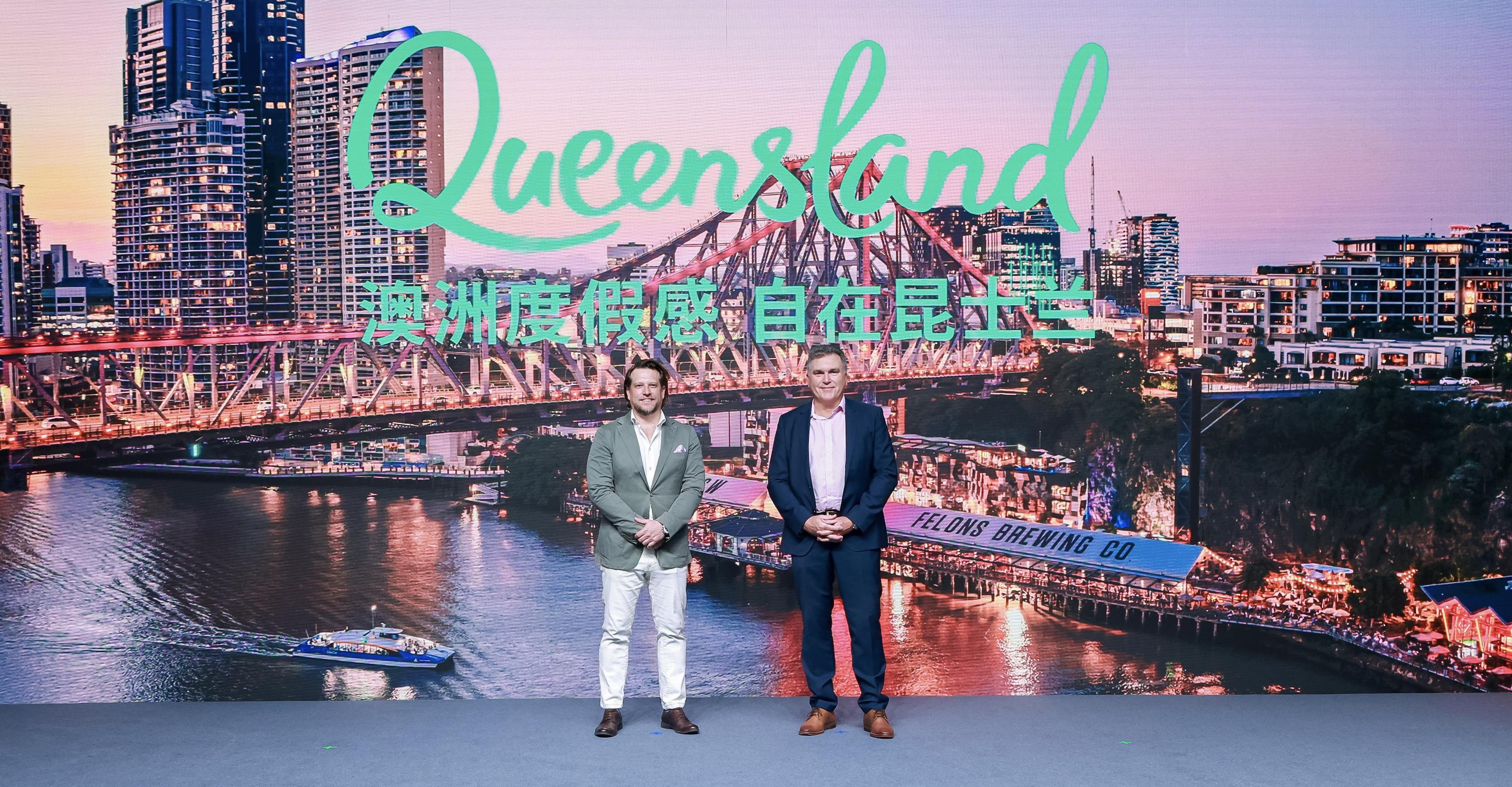 昆士兰旅游及活动推广局首席执行官戴睿德(右)与商务与合作部执行总裁欧礼文(左)共同揭晓新品牌