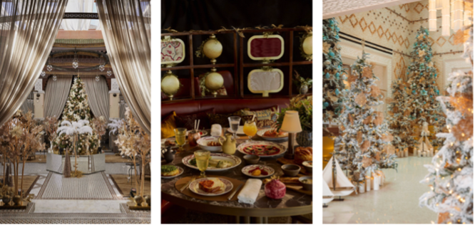 皇家曼苏尔卡萨布兰卡酒店(Royal Mansour Casablanca)则以“夜之幻境”为题,金色森林、装饰艺术风格的风情与星夜美食共同交织。摩城音乐风格的表演、奢华英式下午茶与沉浸式节庆体验相继登场,更有定制水疗与美容礼遇,尽显都市华彩。