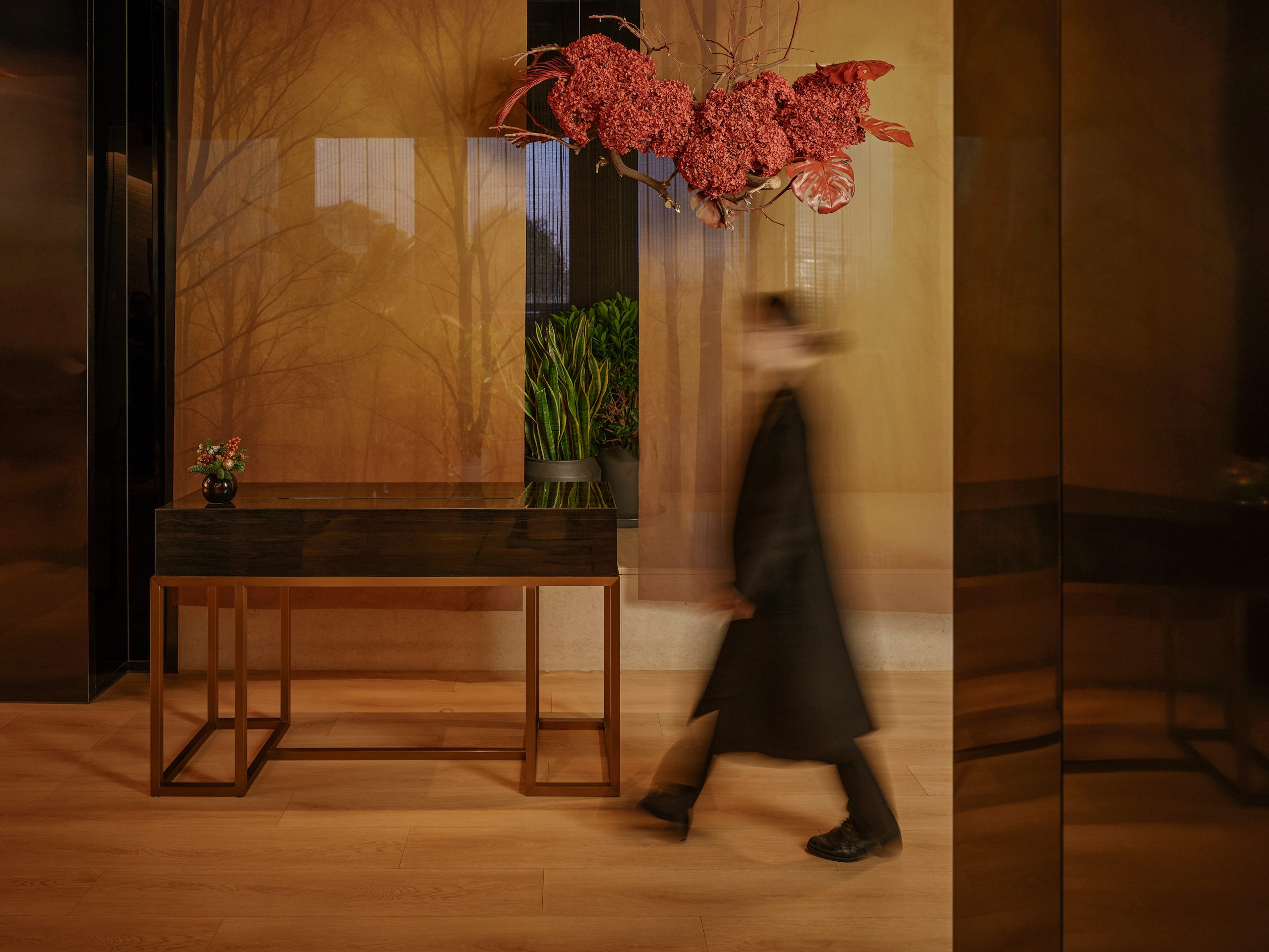 光与影一直是酒店品牌基因中的一部分,亦是宾客最钟爱的瞬间之一。璞瑄联袂艺术家张泽洋平,以影像为媒介,将光影、织物与空间交织,创造出如织物般轻盈流动的空间形态——它穿梭于酒店的不同场景之间,如同时间的呼吸般延展。