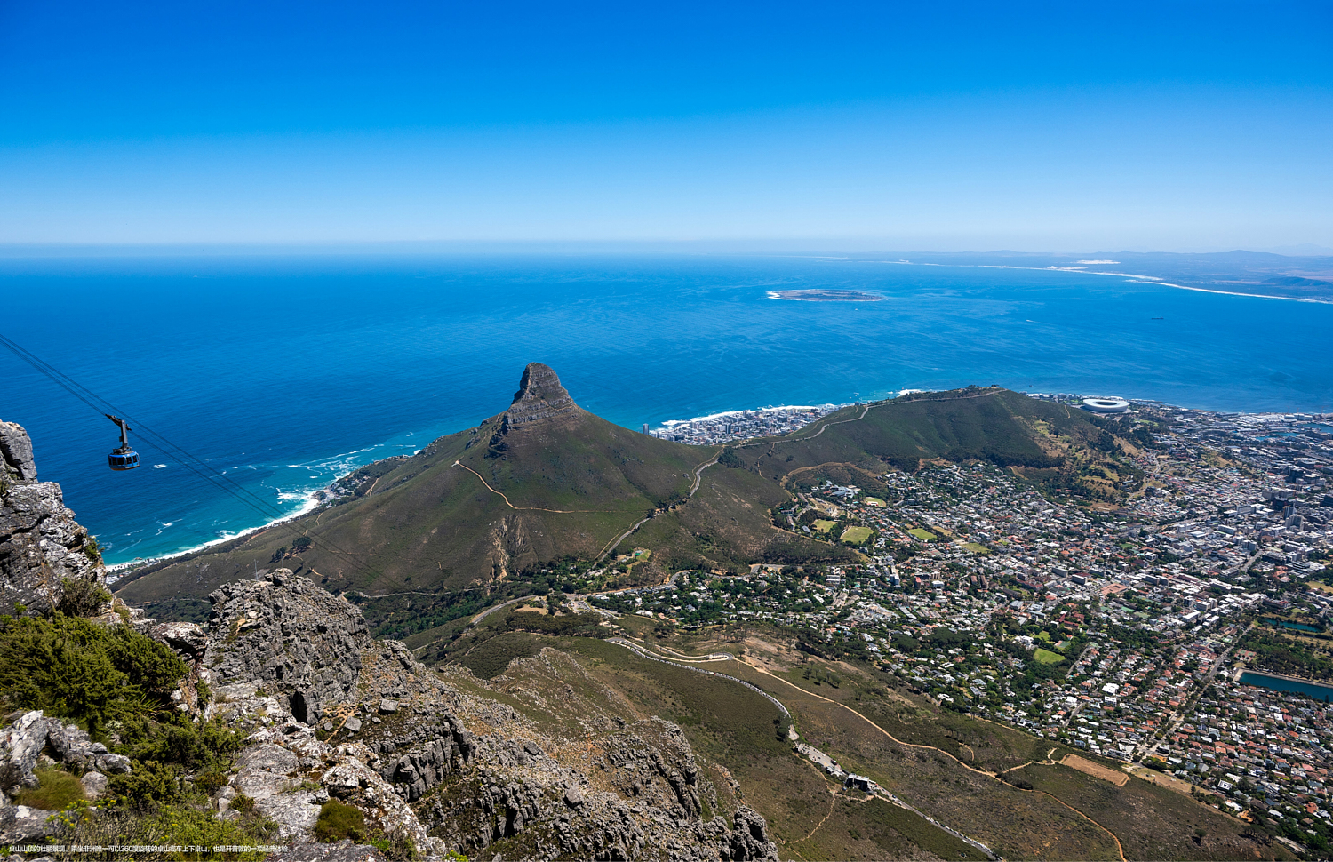 从壮丽的桌山俯瞰开普敦繁华与海洋的交汇,