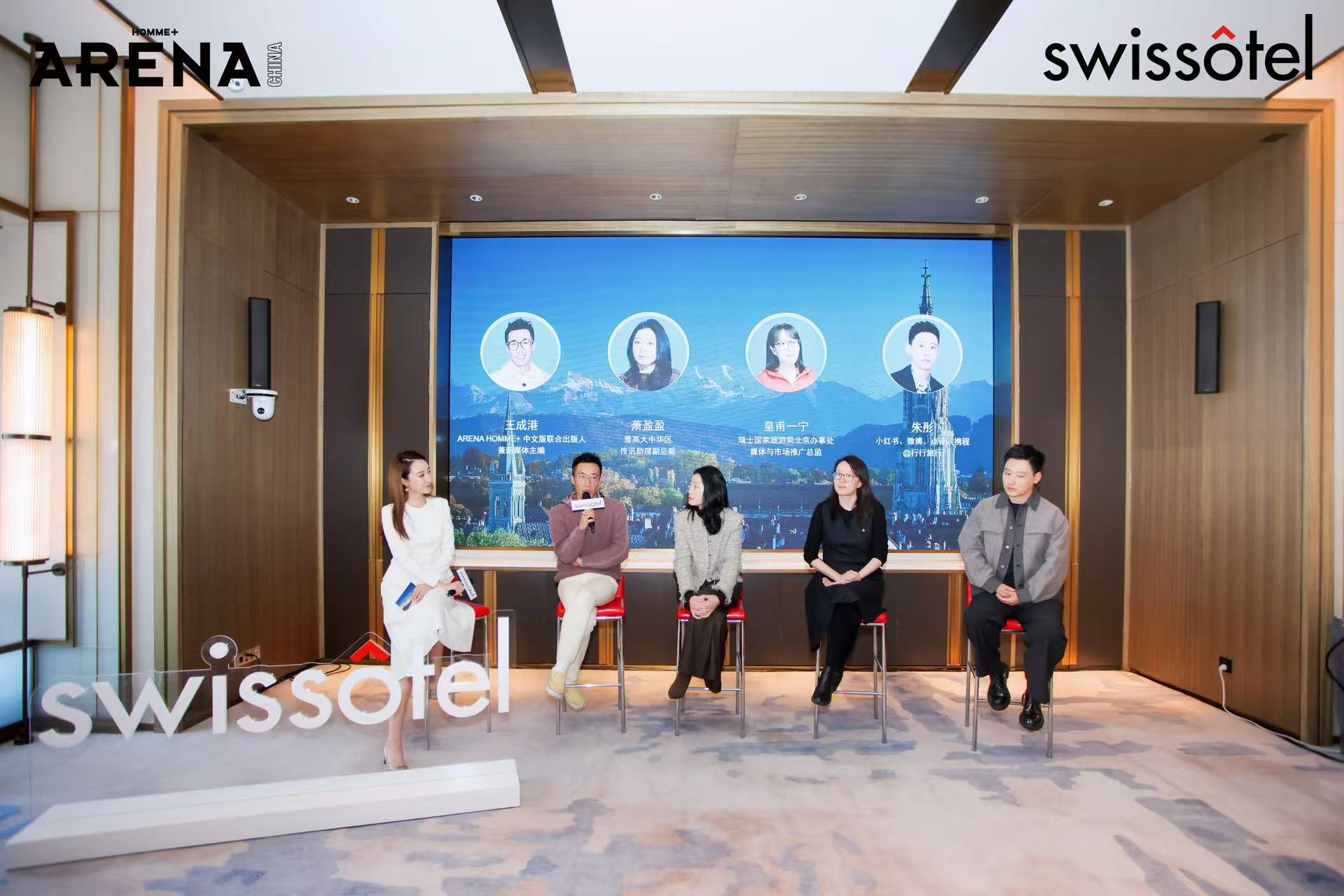 沙龙的核心环节呈现一场深度论坛,雅高集团传讯助理副总裁萧盈盈女士、瑞士国家旅游局中国区代表皇甫一宁女士、知名旅行意见领袖朱彤先生,以及《ARENA HOMME+》CHINA联合出版人王成港先生,共同围绕“慢奢新定义”展开多维对话。