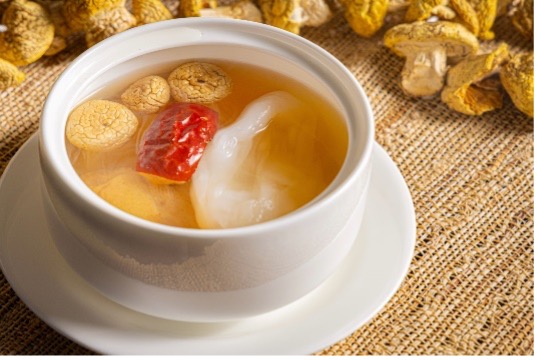 草原黄菇炖乳鸽花胶汤