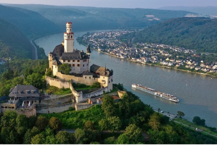 图:维京长船航行于莱茵河(德国·马克斯堡)
