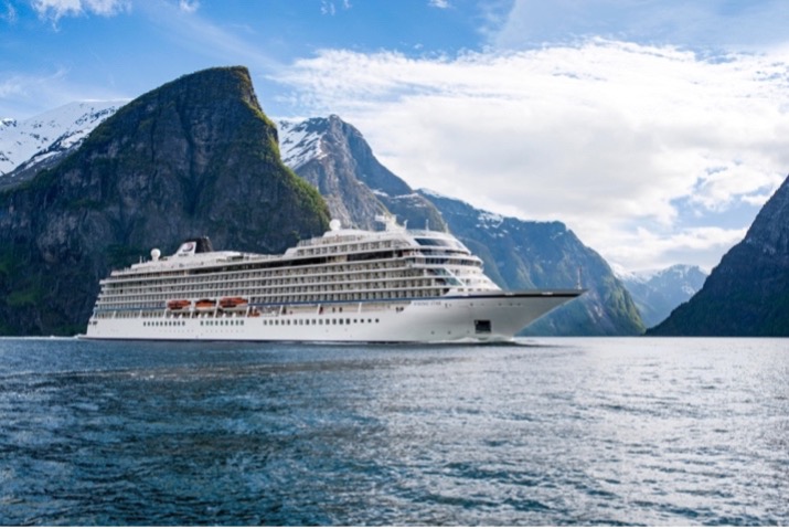 图:维京海轮航行于挪威峡湾