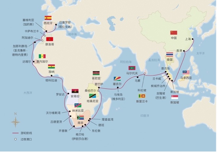 图:维京游轮“60日亚非欧发现之旅”将游访16国27个目的地