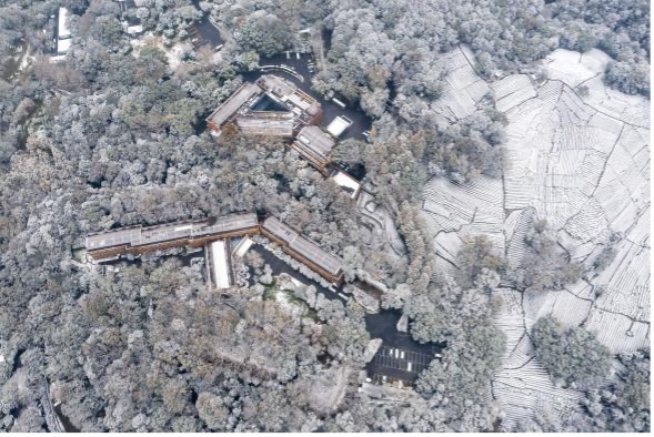 酒店以“山水禅意”为核心,整体建筑融入茶园与山林景致,大堂采用大面积落地玻璃,将室外绿意引入室内,营造出静谧自然的氛围。酒店每间客房均带有观景阳台,推窗即可望见葱郁树林,清晨能伴着鸟鸣醒来,沉浸式感受杭城的山水灵气。