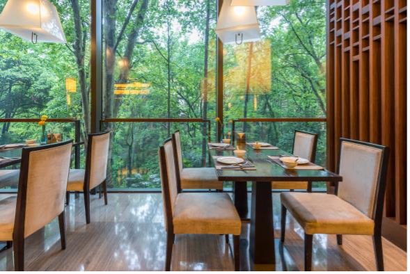 酒店拾溪餐厅享用自助早餐,落座在大落地窗旁,边欣赏山林景观边享用以在千禧的杭州味道为特色的美味,助力元气慢慢的一天。