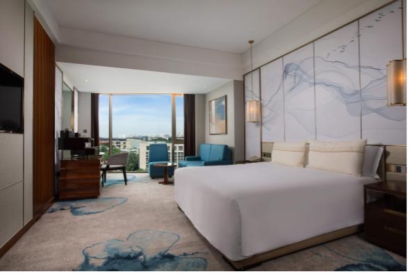 上海千禧海鸥大酒店位于虹桥地区繁华商圈的中心位置,毗邻延安路高架,交通便捷,步行即可至地铁10号线水城路站及15号线红宝石路,可直达豫园、南京路步行街、外滩等核心景点。酒店独享超过1.8万平方米的私属园林,堪称“城市绿肺”,这里绿树成荫,亭台楼榭,是您逃离人潮的私藏秘境。客房面积40m’起,配备用品齐全,室内设计雅致,家具舒适精美,自然采光超大浴室,全景落地窗,在房间内也可尽览花园景致。