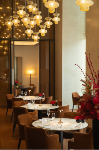 于亮马河畔感受意大利美学的迷人魅力。Il Ristorante – Niko Romito 意大利餐厅位于酒店一层,与花园中精美的木质露台相连,坐拥怡人花园景观和亮马河畔的灵动惬意氛围。餐厅甄选Barovier & Toso 的定制款水晶吊灯,柚木质地板、宝格丽精致银器以及手工切割的Murano Salviati 水晶杯,餐桌的布置更衬托出当代意大利料理的精髓,让宾客在享用臻味的同时感受优雅惬意的意式生活美学。