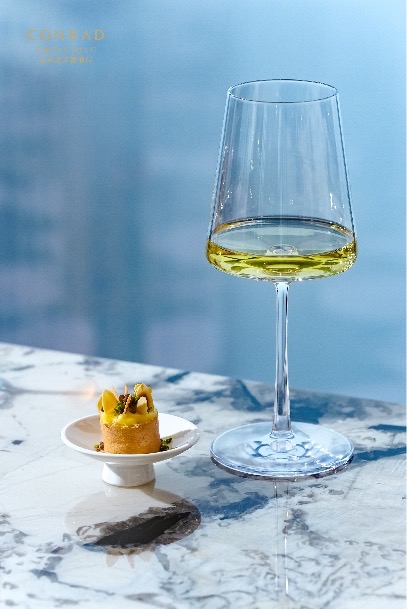 侍者以尚荻世家白中白起泡酒欢迎宾客,剔透的酒液与落地窗外山城的天际线相映生辉,为活动拉开序幕。步入香槟吧,重庆康莱德酒店甜品总厨刘泉林先生向宾客展示了其以匠心打造的系列精致甜品,并分享本次甜品秀的创作理念与灵感:“从重庆永川茶山竹海的意境出发,将酸、咸、苦、辣四味巧妙融入甜品之中,呼应人生百态;同时通过酒与茶的搭配,传递出人与自然和谐相生的生活哲学。”