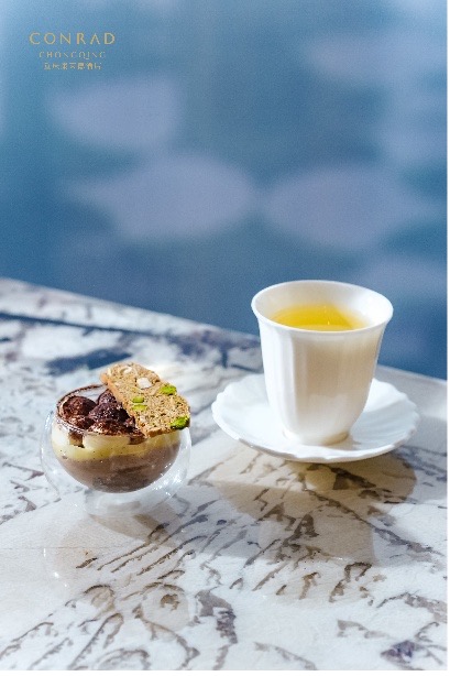 【中国重庆,2026年1月30日】 重庆康莱德酒店在位于52层的MIST雾都大堂吧,成功举办了一场以「茶山竹海」为主题的创意甜品秀。酒店巧妙融入重庆本地风味中的酸、咸、苦、辣、甜五重味型,并以“山、茶、竹、韵”为灵感,匠心呈现四道主题甜品。活动更通过“3652”神秘空间的沉浸式布景,引领宾客步入云端竹林幻境,体验了一场贯通味觉、视觉与文化的多感官盛宴。