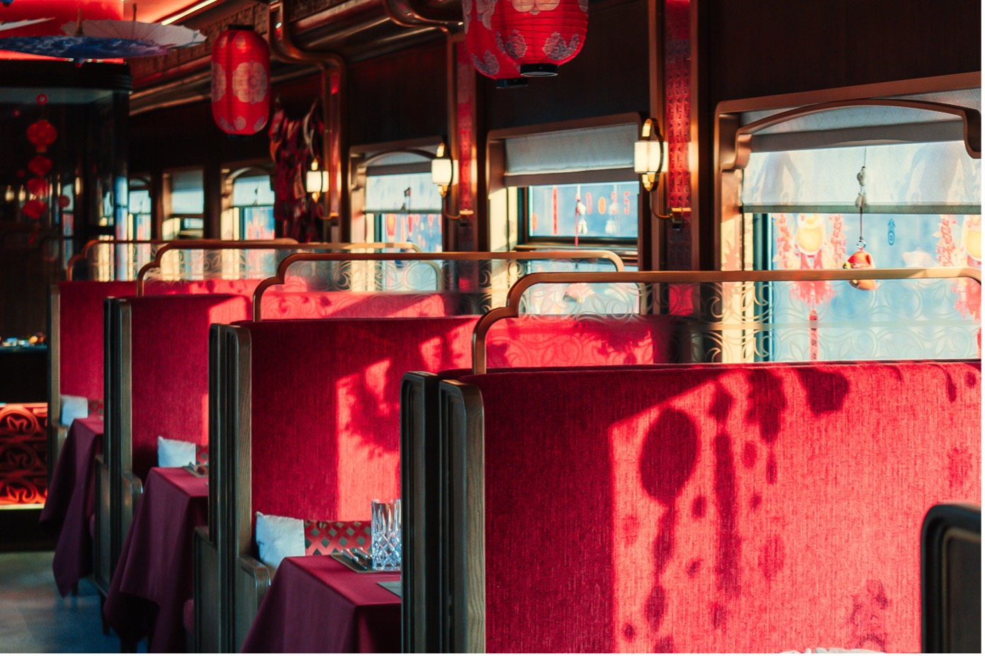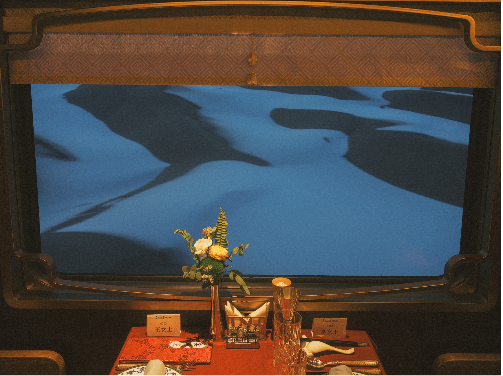 这趟列车尝试重新定义“旅途”本身:不再只是空间的转移,更成为一个流动的栖居之所。贯穿车厢的汉唐风韵的设计语言,从汉代马车轿厢中汲取灵感的社交区域,到拥有全景视野的观景车厢,再到仅设38间的静谧客房,列车试图在移动中构建一个“可居住的风景”。窗外是雪原与远山的沉默流转,窗内则是温暖、设计感与慢下来的时光。