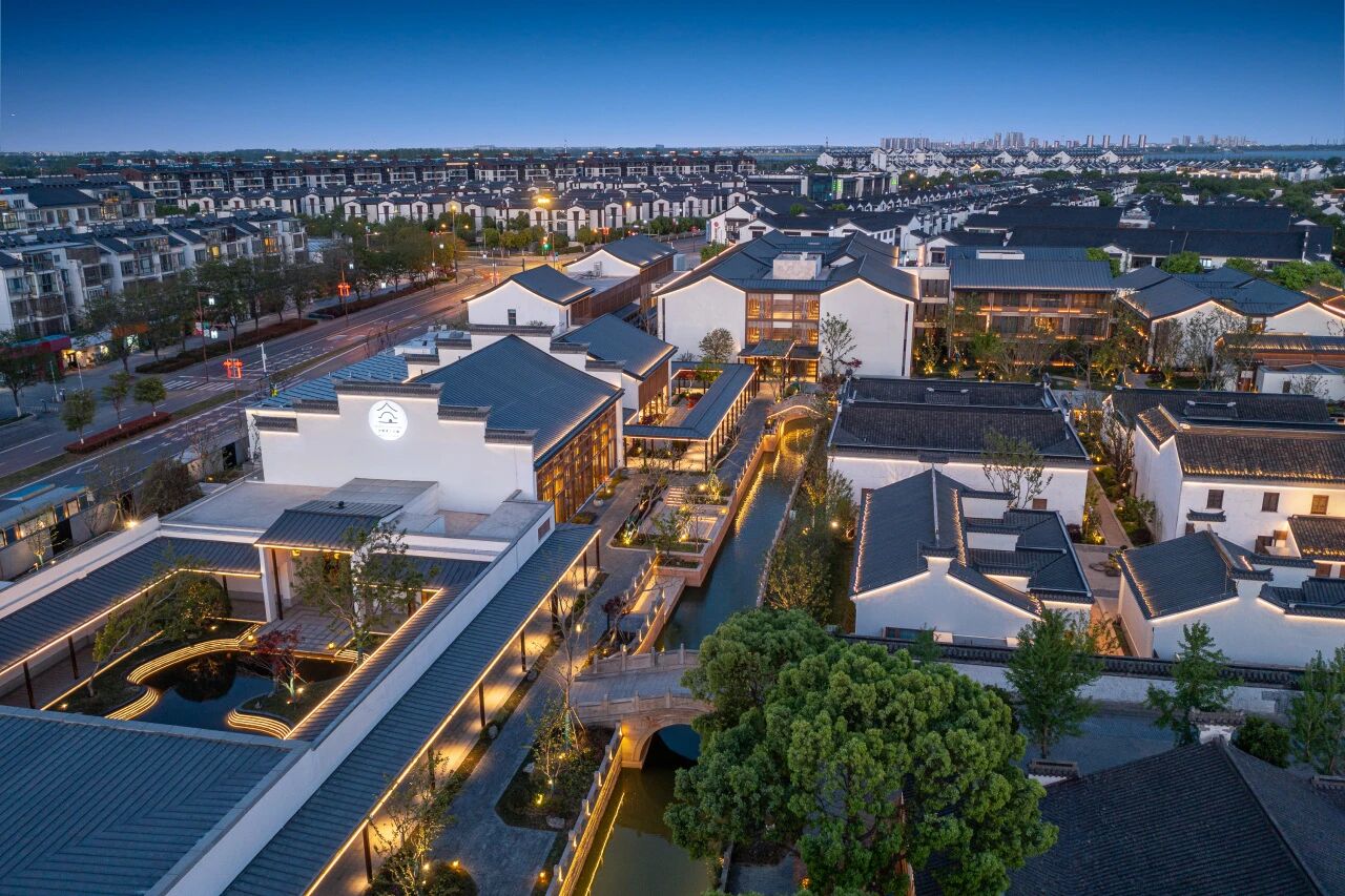 酒店与荡口古镇仅一桥之隔,石板拓印、漆扇手作、泥人彩绘等非遗体验触手可及。入夜,古镇灯火次第亮起,昆曲唱腔在水榭间婉转——这座以华察诗句为基、以江南文脉为魂的府邸,让每一位到访的客人,都成为那首《过烟水庄》中新的诗句。