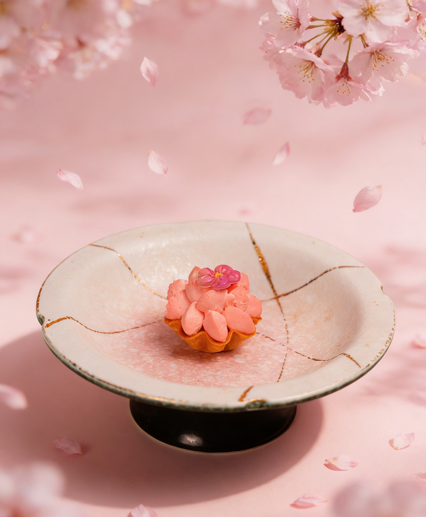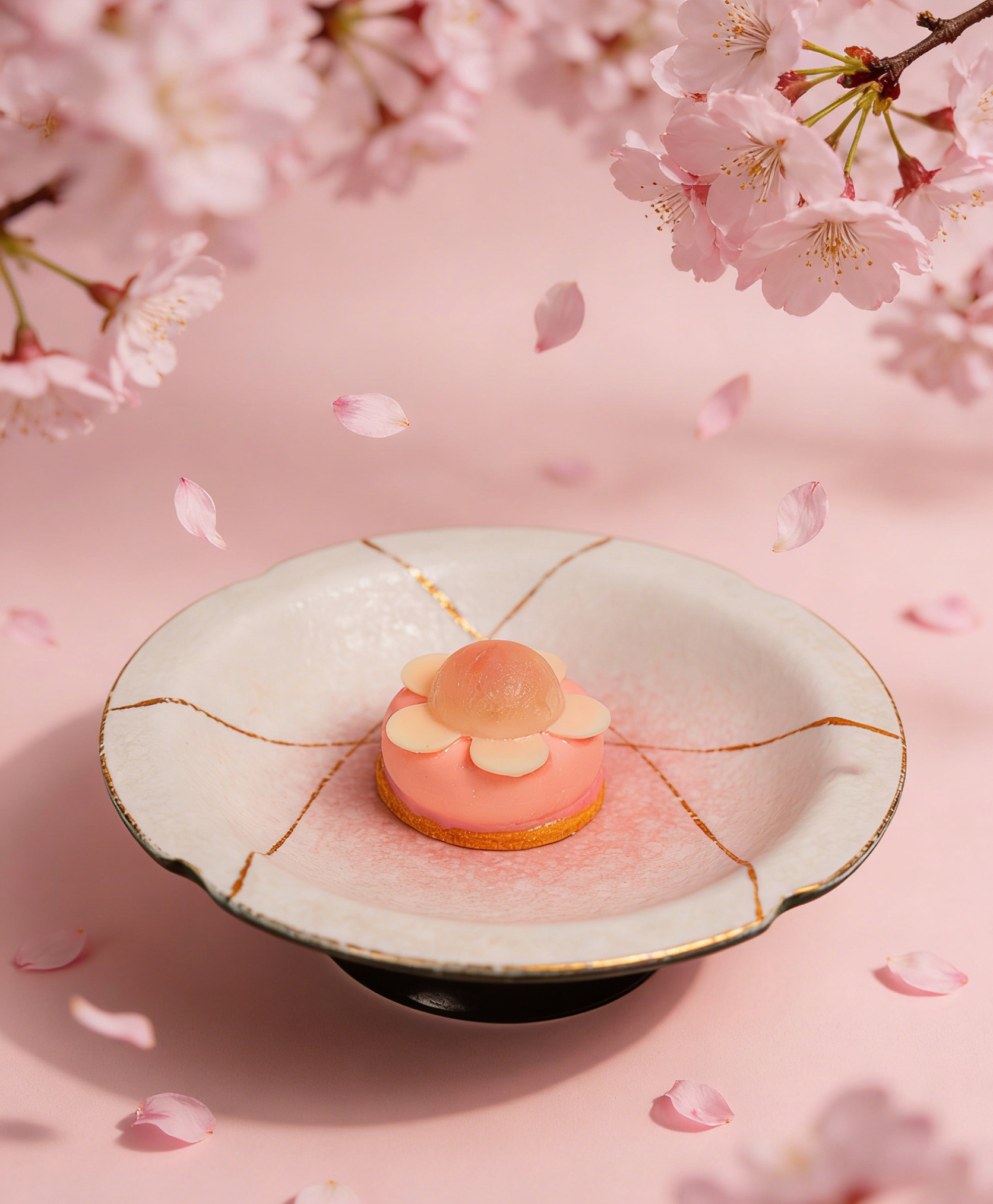 白巧克力慕斯配樱花气泡啫喱