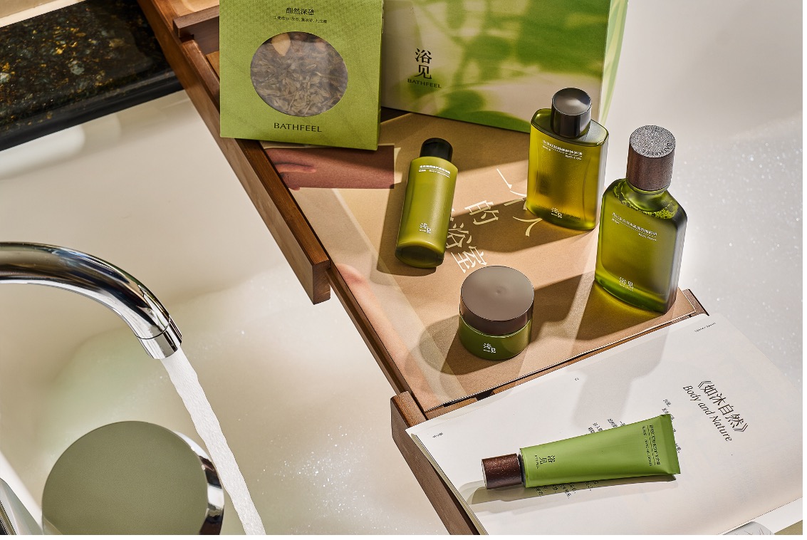 套餐内含定制的「感官春憩」浴见身体护理旅行套装,包含草本浴包、草本泡泡浴油、磨砂油膏、沐浴油、身体油霜、护手油霜。从沐浴清洁到养护放松,从晨间焕活到入夜舒缓,从身体到情绪,水声和春日柚林的香气交织,一套触达五感的完整身体护理仪式在“第二浴室”中徐徐展开。通过浴见“以油养全身”的护理哲学,将天然植物油脂与树木香气融入沐浴过程,创造关注自我的时刻,让身体拥有松弛而自由的感受。