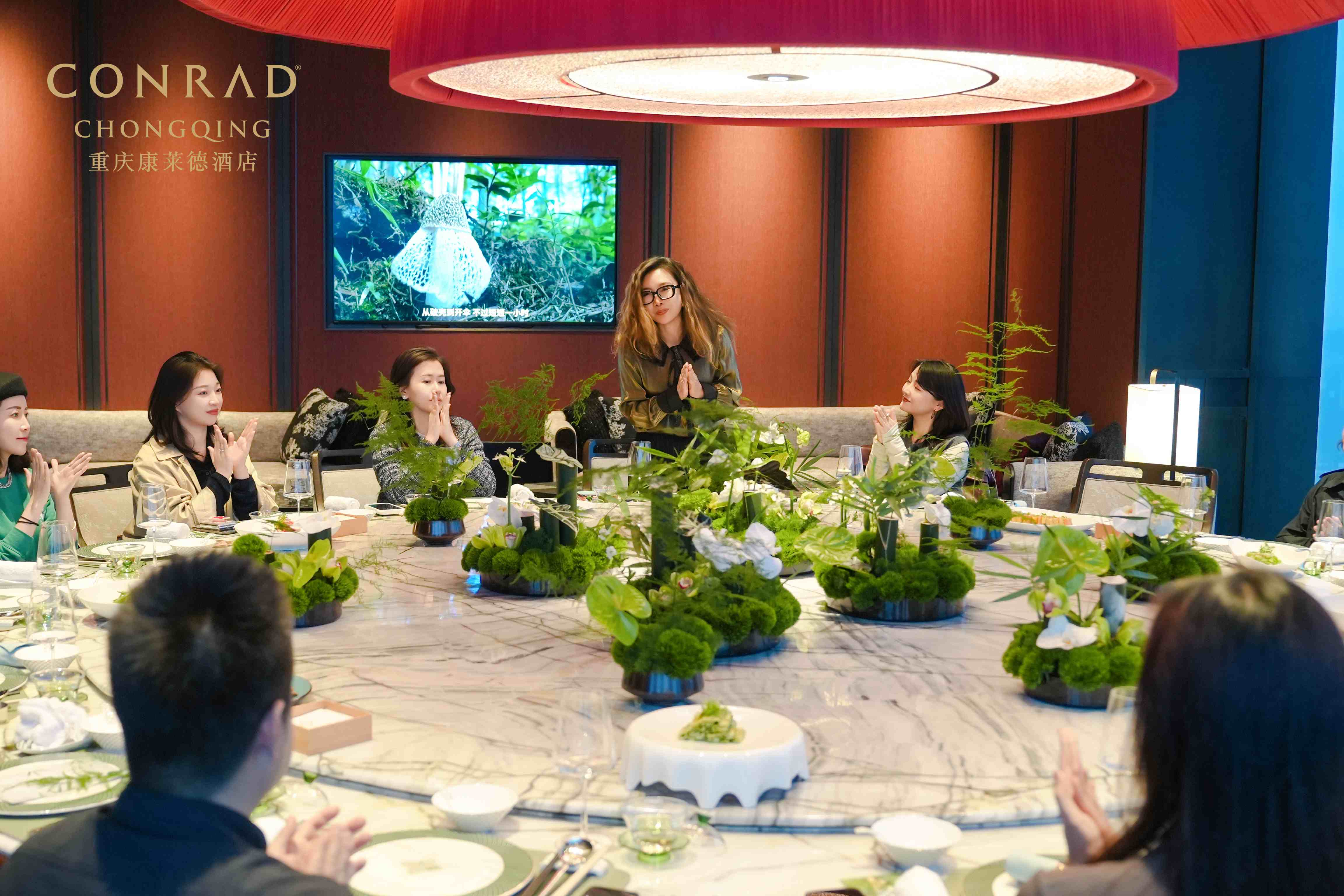 席间,酒店总经理Sally女士代表康莱德致欢迎词,并向到场宾客表达了诚挚的感谢。她表示:“我们希望通过这样一场小而美的私宴,把重庆康莱德酒店对‘在地文化’与‘精致生活’的理解,用一种不设防、不张扬的方式,呈现给这座城市里最懂生活的朋友们。”