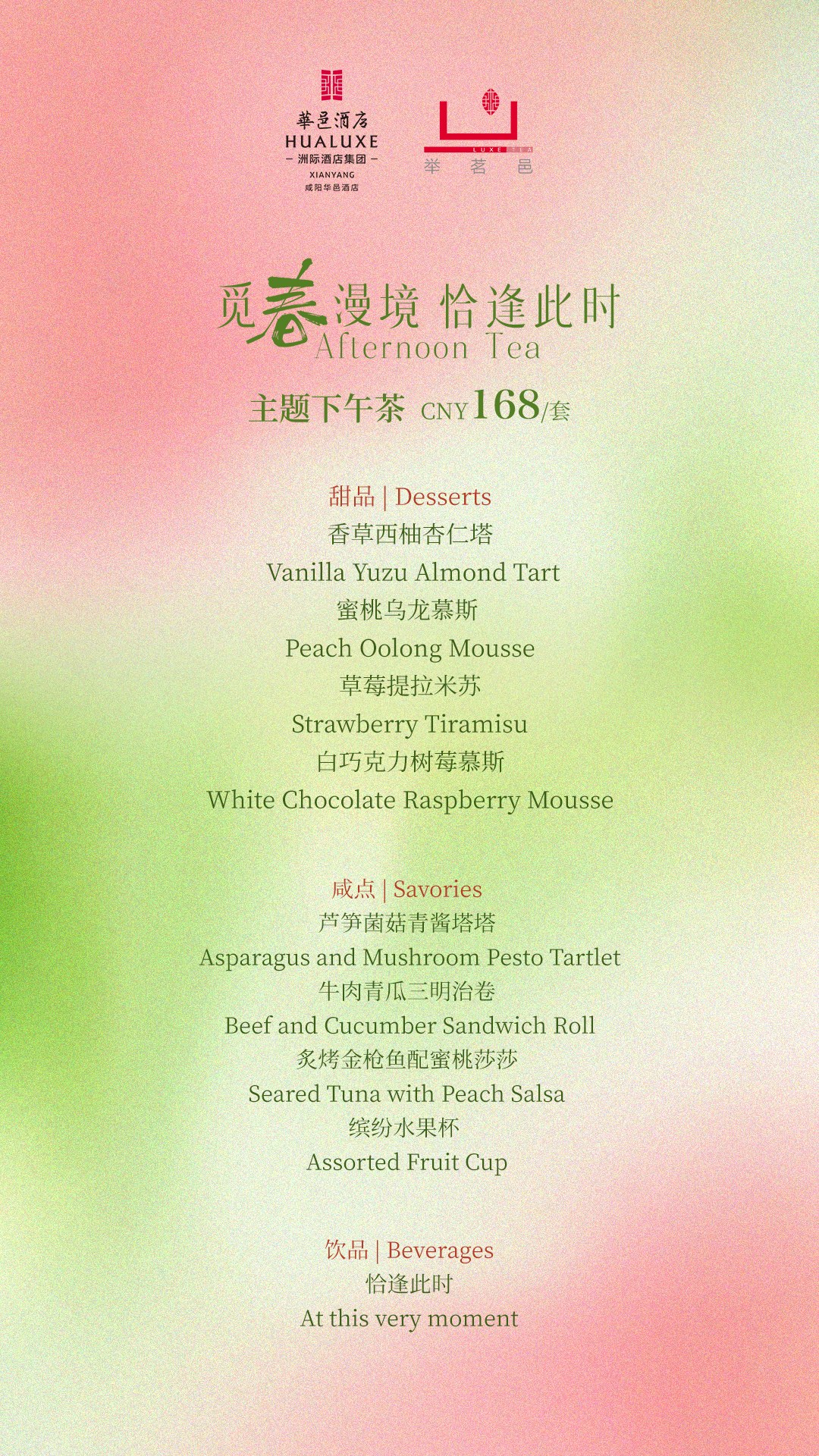 近日,咸阳华邑酒店以“觅春漫境,恰逢此时”为主题,推出春季限定下午茶,邀宾客在清新惬意的氛围中尽享午后甜蜜时光。