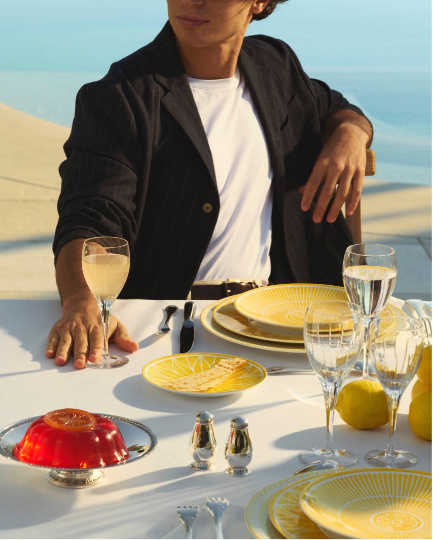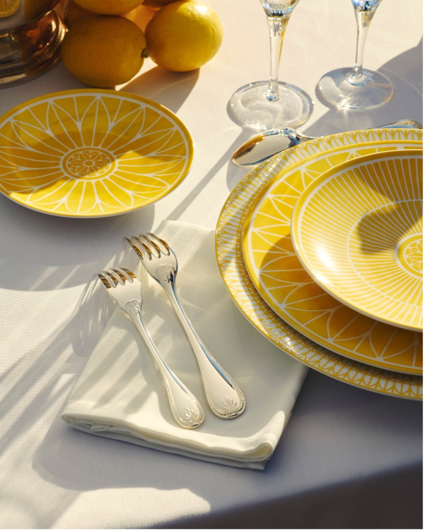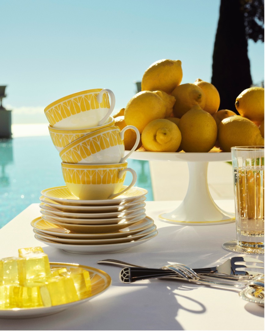 Malmaison Riviera 马勒梅松海滨系列每件单品仿佛以精致如水彩般的明黄色调,捕捉了地中海的阳光,是那般鲜活而自然,温暖并照亮餐桌。