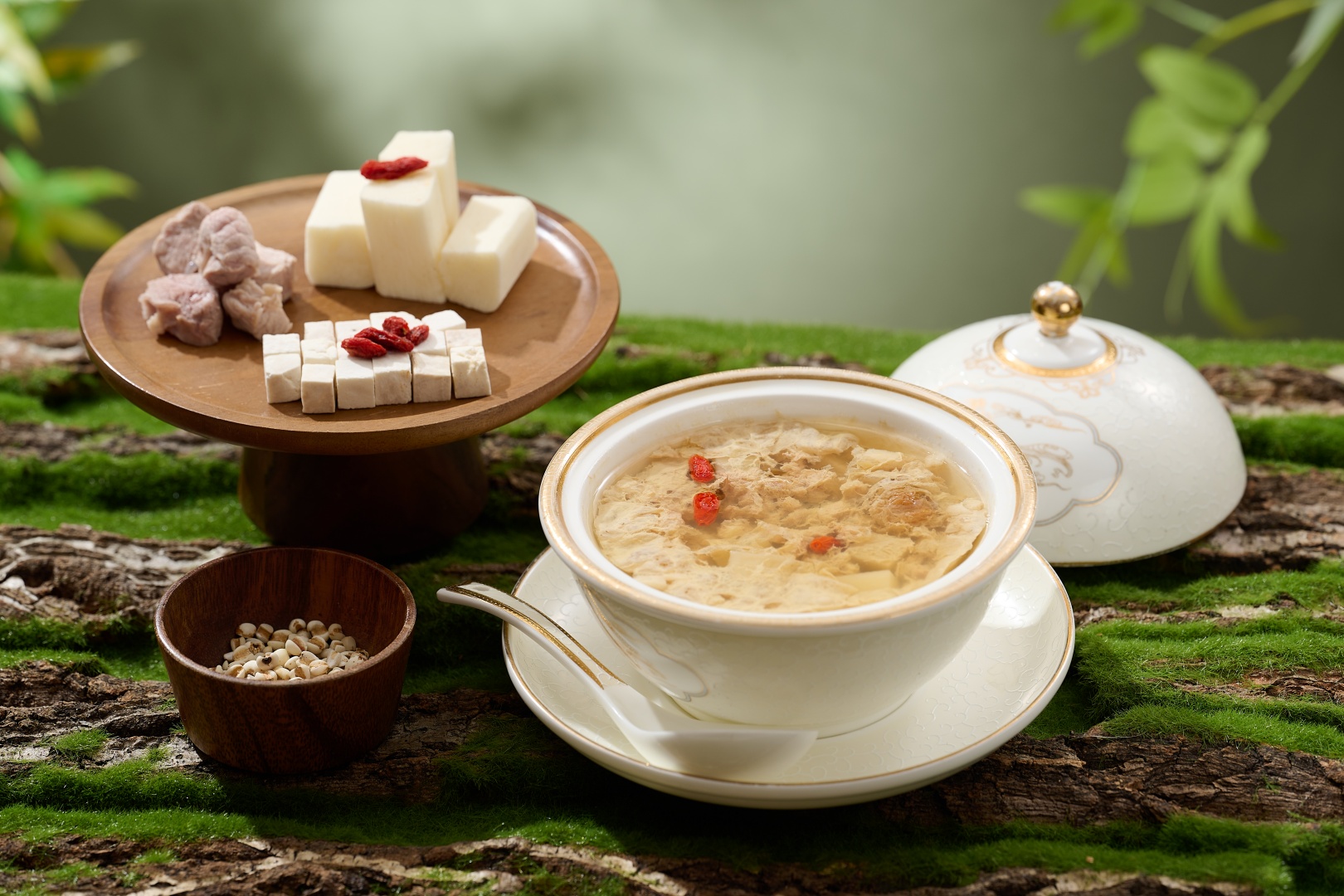 汤品是广府餐桌的温柔注脚。淮山茯苓炖瘦肉汤,以茯苓、淮山配伍,清润祛湿,汤色澄澈,恰如春雨润物无声。