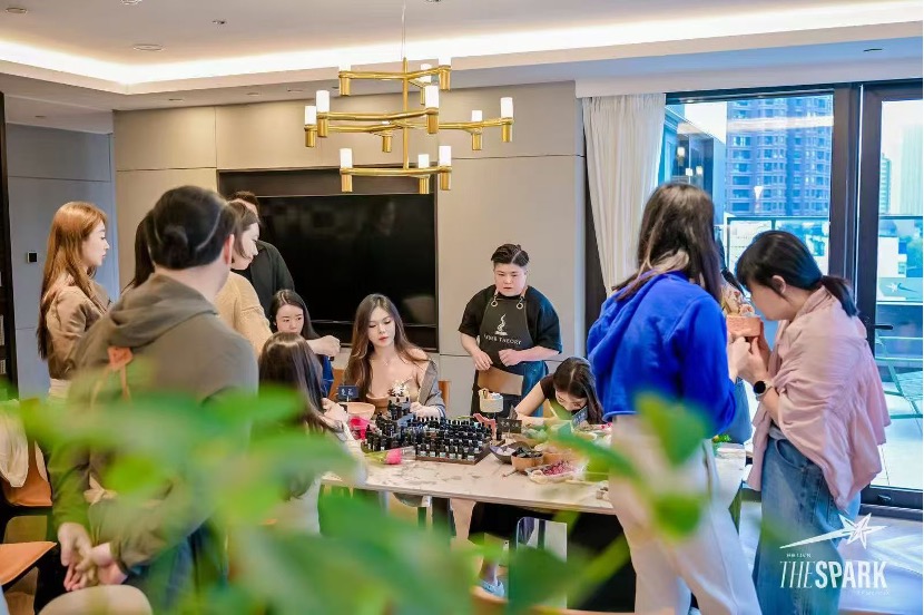 午后时光转向私密而精致的创意体验。序木带来的家居香氛工坊,于私人用餐区开启,住客们在调香师的指导下,亲手调配专属家居香氛,将”家的味道"变成可触碰、可带走的真实气息。活动入口处的互动拍照亭成为社交媒体打卡热点,记录下住客们的灿烂笑容,也为社区留存下珍贵的年度记忆。