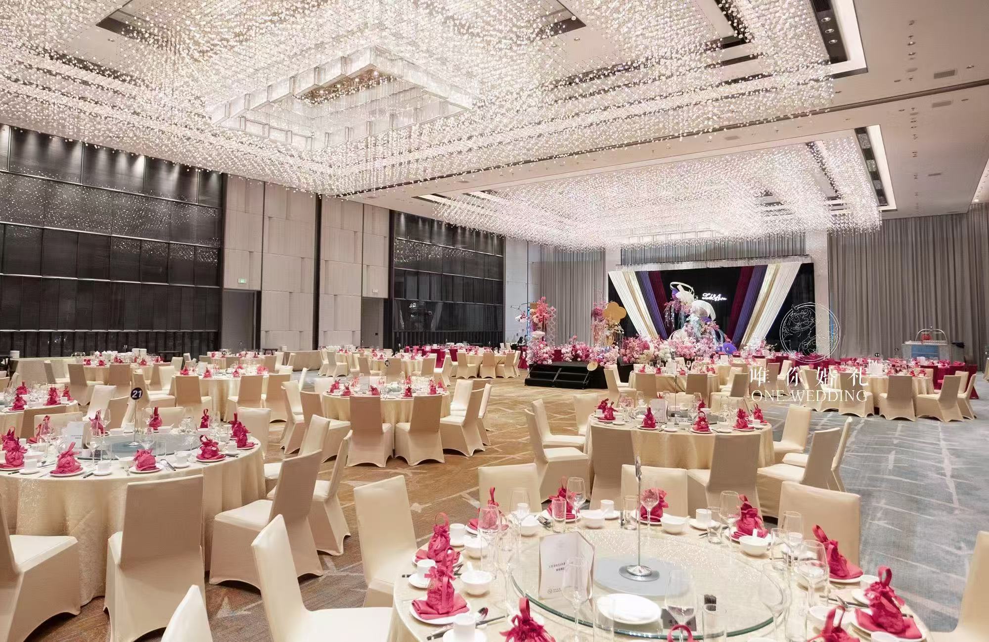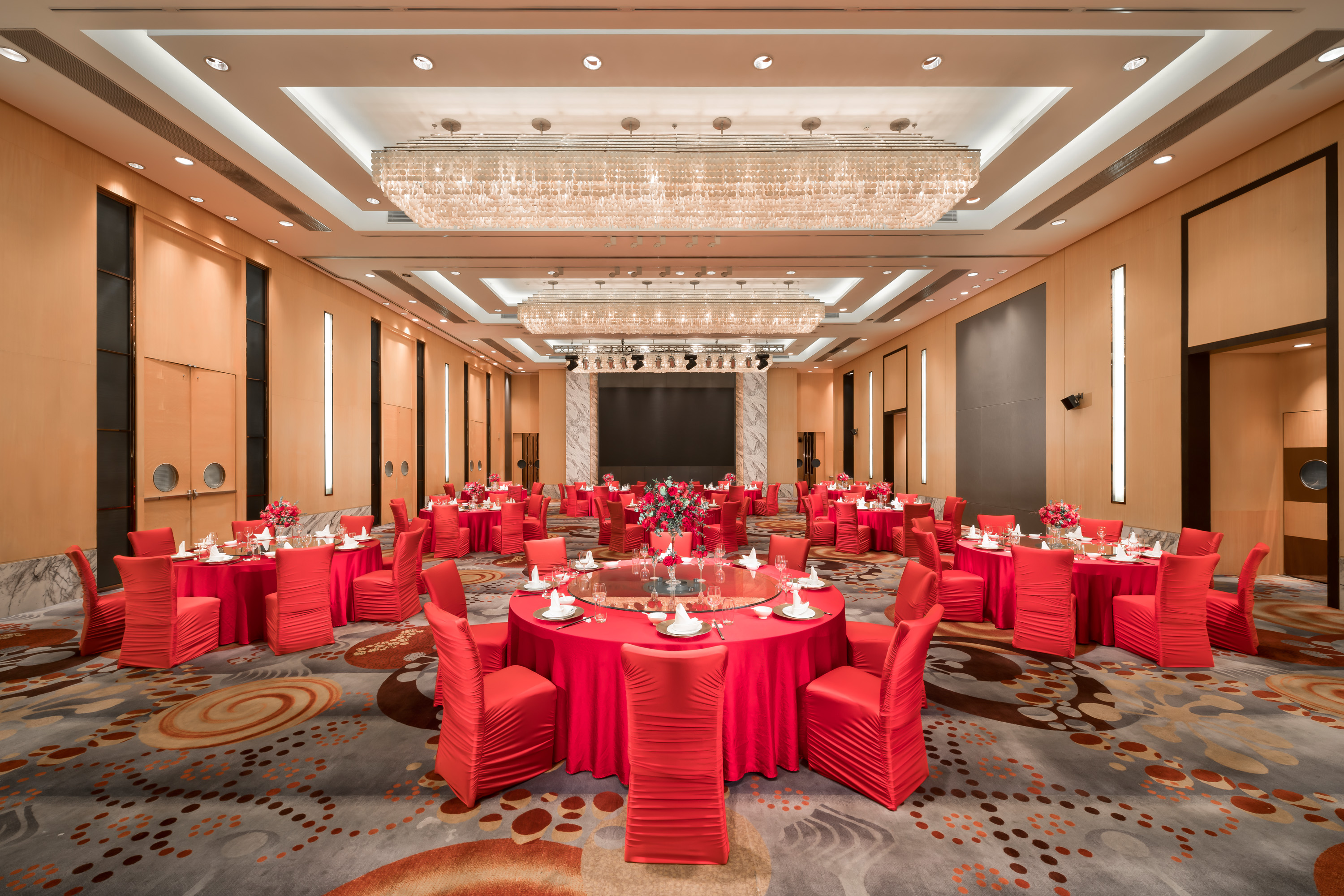 超过1,130㎡的宴会场所,采用高挑天花板设计,厅内宽敞无柱,能为宾客打造中西式浪漫婚礼。与此同时,宴会厅内风格现代时尚、设备先进,别致的色灯折射出大气,全新56㎡高清LED屏满足婚宴个性化需求,在落地玻璃迎宾前厅布置留影区、享用精致下午茶,尊显贵气。