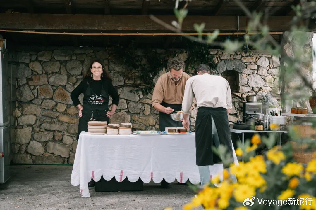 徒步没有结束,而是自然过渡到另一种节奏。从岩石与雾中走下来,进入的是一片安静的葡萄园。刚刚的山风仿佛还停留在衣服上。身体还在徒步的状态里,但环境已经变得柔软许多。尼斯蔚蓝海岸旅游局还特地邀请了Casa des Madeleines的Pierre主厨来到酒庄,为大家准备一顿真正意义上的“在地餐桌”。