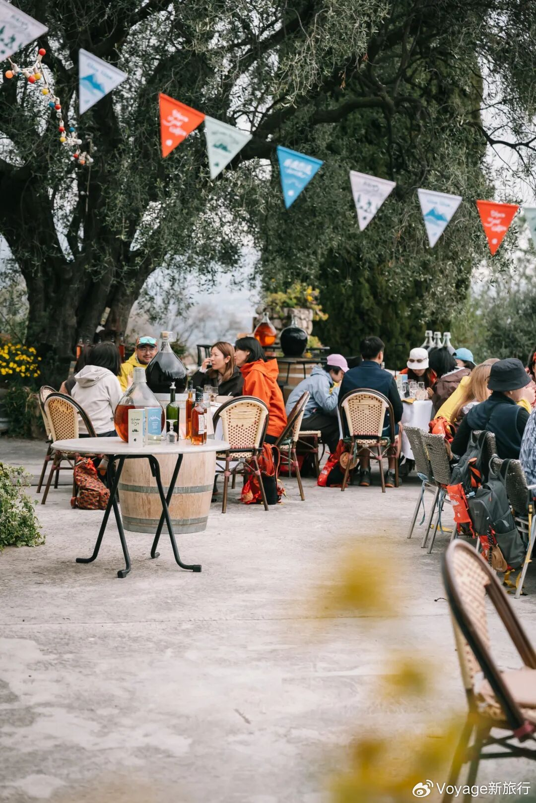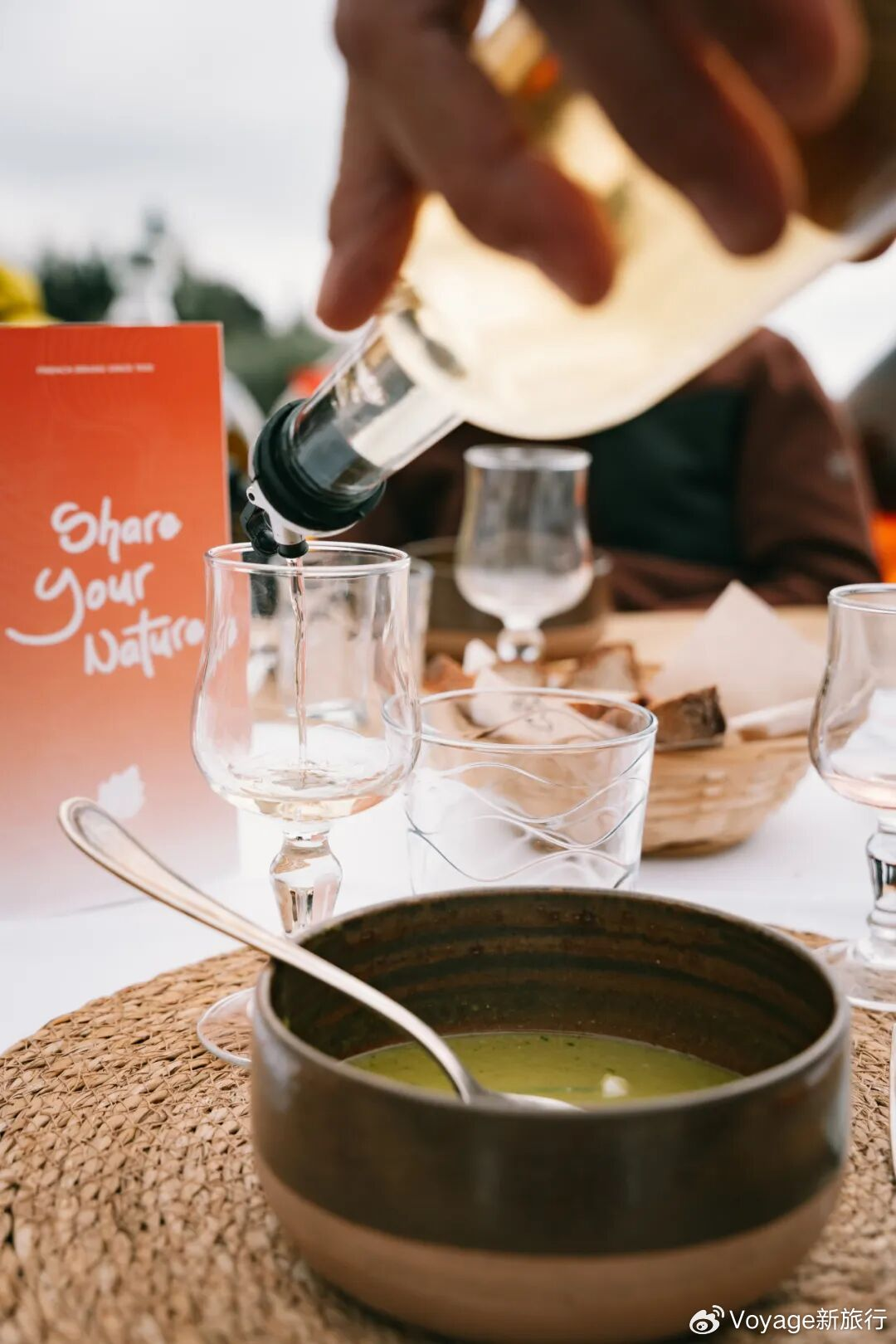 当你坐下来,手里拿着一杯刚刚开瓶的白葡萄酒,回头再看刚才走过的那座山,会有一种很奇妙的连接感,从雾中的不确定,到山顶的开阔,再到此刻的松弛,一整天被串成了一条完整的线。