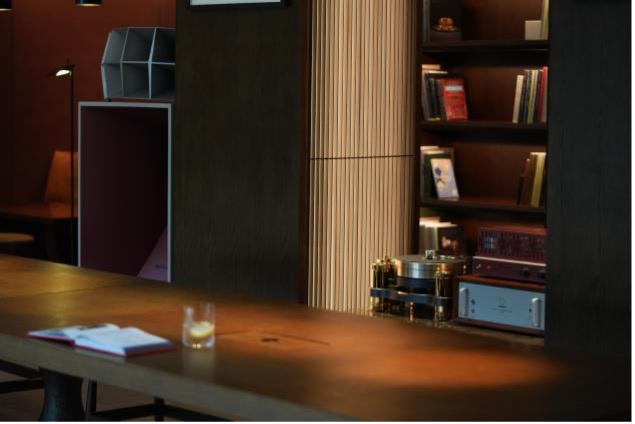与此同时,空间亦汇集嘉德文库精选艺术图书、并引入由知名音响设计师曾阳明先生为女性美学专属打造的黑胶胆机号角系统(大象音响)——它既是一套声音系统,也是一件会发声的装置艺术。
